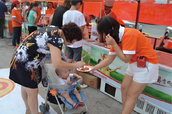 活动时长大约30分钟,首先快闪人员在王府井南昌路店门口广场中央集合,穿戴着简单大方、整齐利索的衣物四处游走在人群中。时间一到,音乐响起,歌手慢慢走近中央,一首振奋人心的“我和你”拉开整个活动的序幕,瞬间引起了在场所有人群的关注。紧接着舞蹈演员闪亮上场,展开了一场激情澎湃的机械舞,带动现场观众情不自禁参与到表演中来,此时人流迅速聚拢,引起围观。然后正大食品有限公司员工身着公司服装,唱着正大集团《爱是正大无私的奉献》一起出现在广场中央,随后几段歌舞串烧将现场气氛推向***,在观众意犹未尽之时迅速闪开在人群之中。活动过程中穿插进行了分发公司宣传材料、食品安全知识宣传单,现场观众品尝了洛阳正大猪肉调理品、酱卤产品及集团现代食品。
