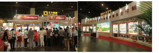 展会上,正大集团隆重推出正大猪肉、鸡肉、面点、休闲小食、水产(鱼、虾)、鸡蛋、红酒等系列正大食品。本次展会意向加盟正大食品客户120多家,展会总销售额达3万多元。正大食品秉承“安全、营养、美味、便捷”的理念,引领农牧食品行业的发展,为行业树立了食品安全建设的典范。