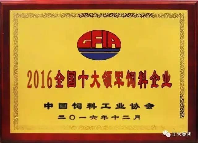 ▲正大集团被中国饲料工业协会授予“2016全国十大领军饲料企业”称号