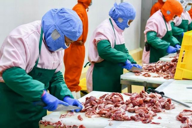 比赛分为两个项目:小酥肉原料肉切肉比赛和小酥肉包装比赛。公司屠宰车间、分割车间、调理品车间、副产车间和熟食车间共派出6支参赛队伍。小酥肉原料肉切肉比赛每个队伍时间限定20分钟,在20分钟内根据所切肉条的重量和完成质量评定名次。锅圈小酥肉包装比赛每个队伍包装300袋(约80kg)小酥肉,根据所用时间和包装合格率评定。比赛开始之前,熟食厂经理张沛宣布了比赛的规则,叮嘱参赛选手在比赛中注意安全,随后比赛拉开了帷幕。