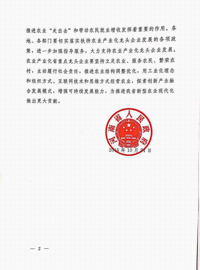 农业产业化省重点龙头企业2016.10.24
